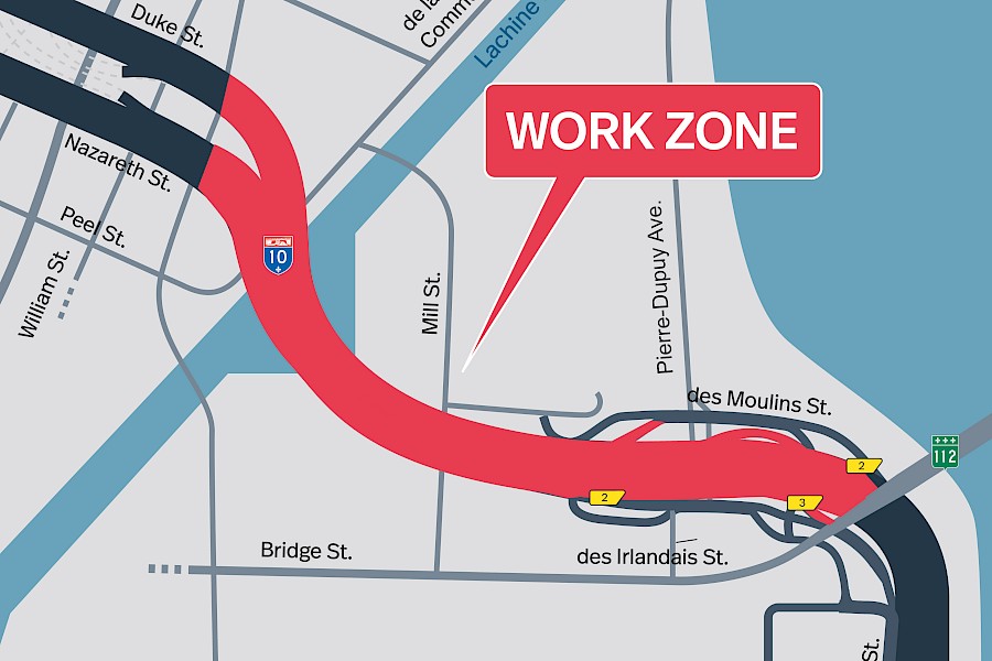 Access from the northern point of Île des Soeurs to the Bonaventure Expy. toward downtown will be closed as of September 2025. The detour will be via Gaétan-Laberge boulevard.
